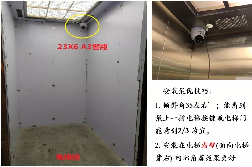 (2)根据经验,监控安装在大电梯右壁(面向电梯靠右)内部角落对于目标人身遮挡检出更有利;